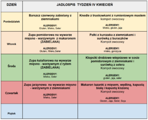 Nasza szkoła oferuje możliwość korzystania ze stołówki szkolnej. Obiady przygotowywane i dostarczane są przez firmę Pasja s.c. z Przeciszowa.