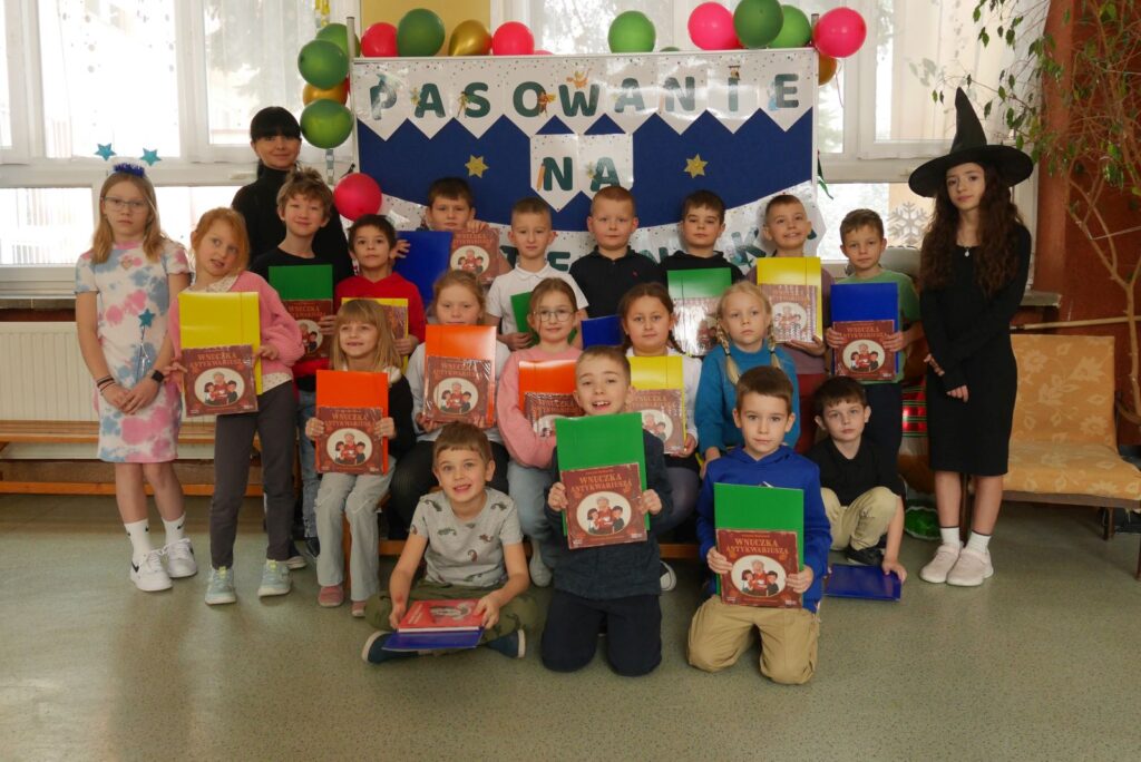 Dzień 22 stycznia 2026r. był bardzo ważny dla uczniów klasy pierwszej. To wtedy każde z nich stało się pełnoprawnym czytelnikiem biblioteki szkolnej. Zanim jednak to nastąpiło, kandydaci na czytelników musieli wykazać się znajomością bajek. Rozwiązali pojedynczo i wspólnie mnóstwo trudnych zadań. W nagrodę za prawidłowe odpowiedzi dzieci otrzymywały książkę autorstwa Justyny Bednarek pt. Wnuczka antykwariusza. Kiedy uznano, że pomyślnie przeszli próbę, nastąpiło uroczyste pasowanie na czytelnika. Tekst obietnicy dzieci powtarzały za wróżką, natomiast uroczystego pasowania dokonała czarownica. Zgodnie z tradycją, do tej ceremonii użyto wielkiej księgi. Od taj chwili pierwszoklasiści są pełnoprawnymi czytelnikami biblioteki szkolnej.